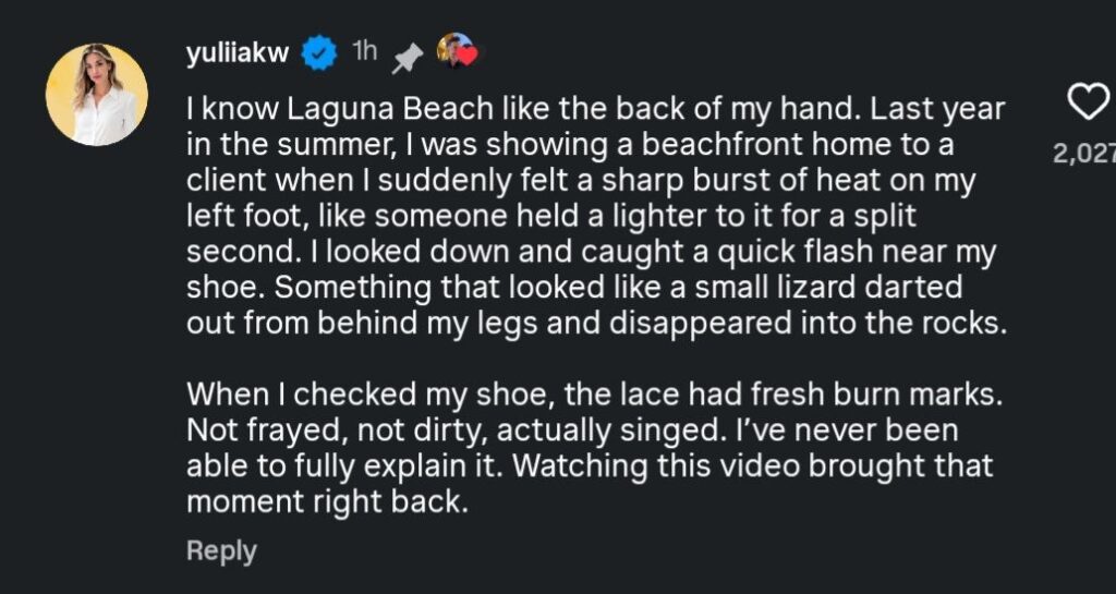 The person claimed they briefly saw a small lizard-like animal quickly run away into nearby rocks. What made the incident unusual was what they noticed next — their shoe lace appeared to have fresh burn marks, not dirt or tearing, but actual scorching.